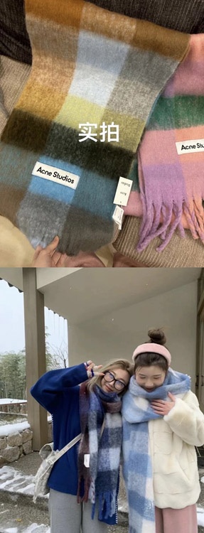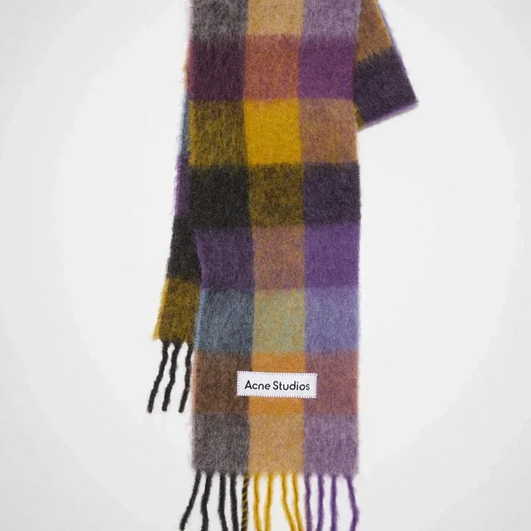 ACNE rainbow plaid scarf with tassels and color-blocked AC shawl-4981