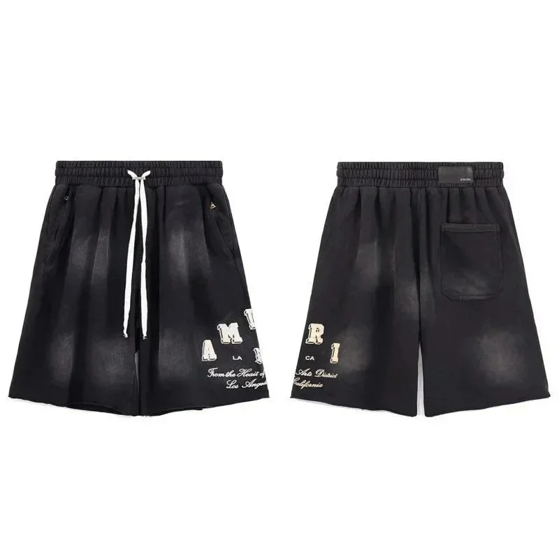 AMIRI New logo number 22 washed retro couple trendy sports 5-point shorts suit-1916