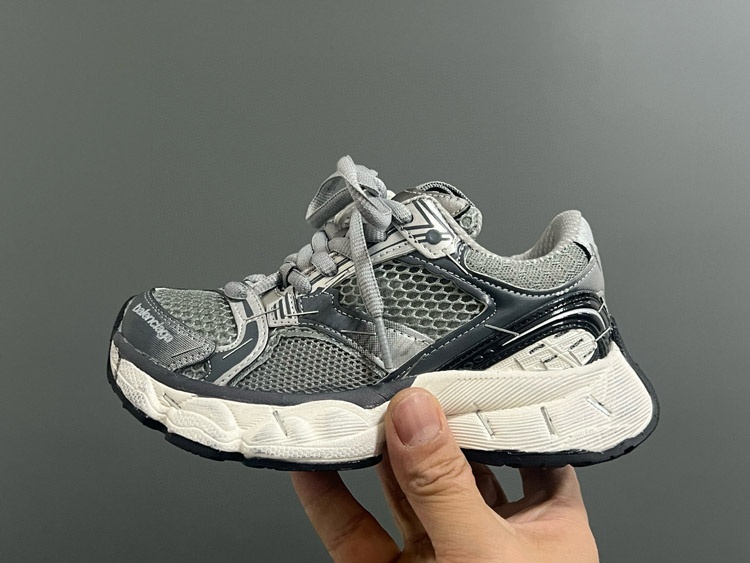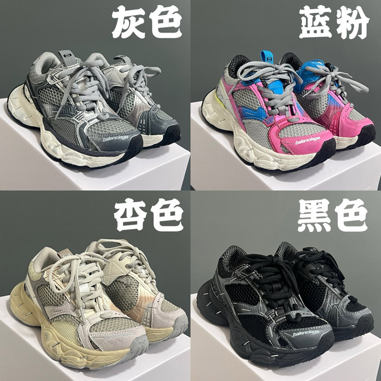 Balenciaga stapler round toe lace-up low-top distressed children's shoes-4164