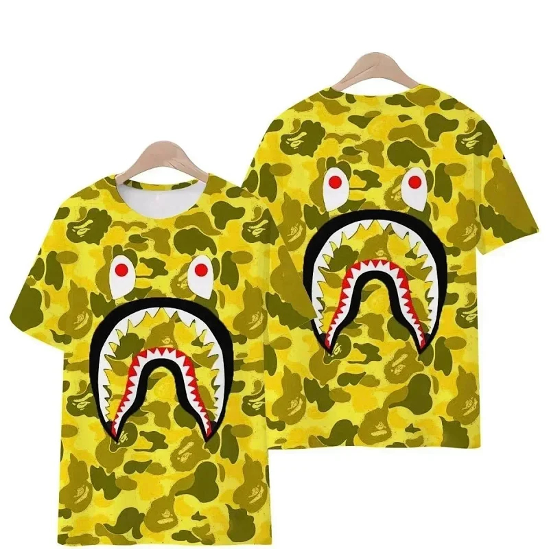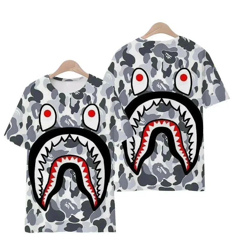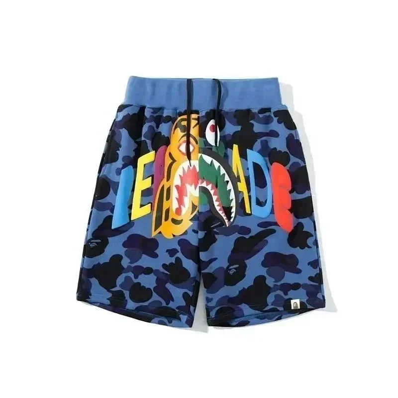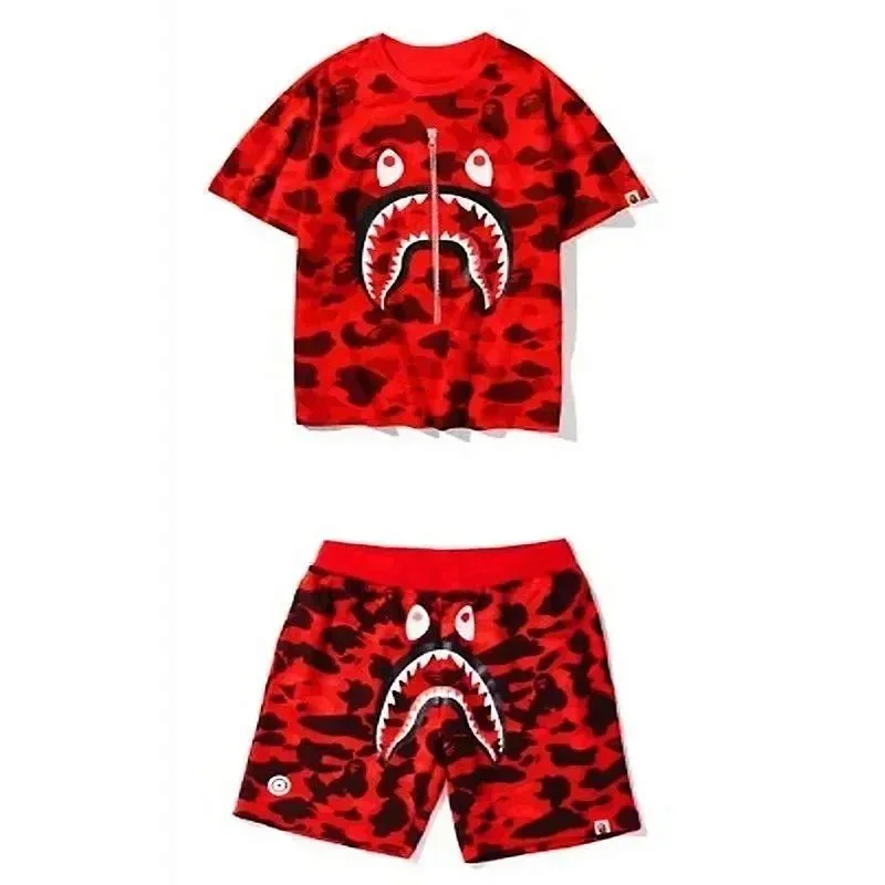 Bape shark zipper letter full print camouflage pattern short-sleeved T-shirt shorts set-2818