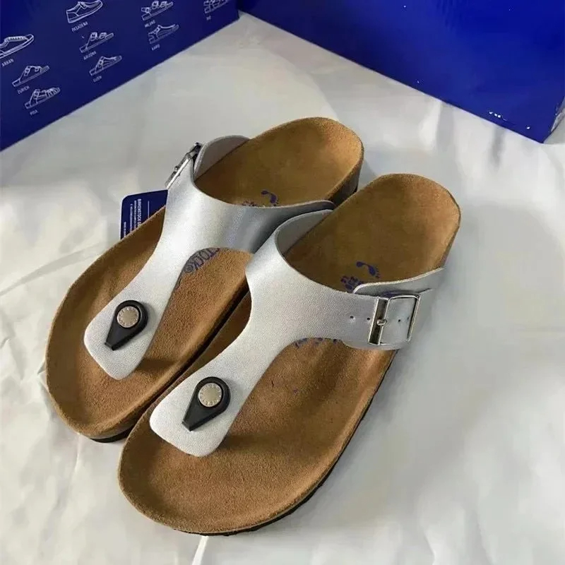 BIRKENSTOCK Lazy men's and women's double buckle flat slippers genuine leather cork footbed comfortable outdoor sandals-2342