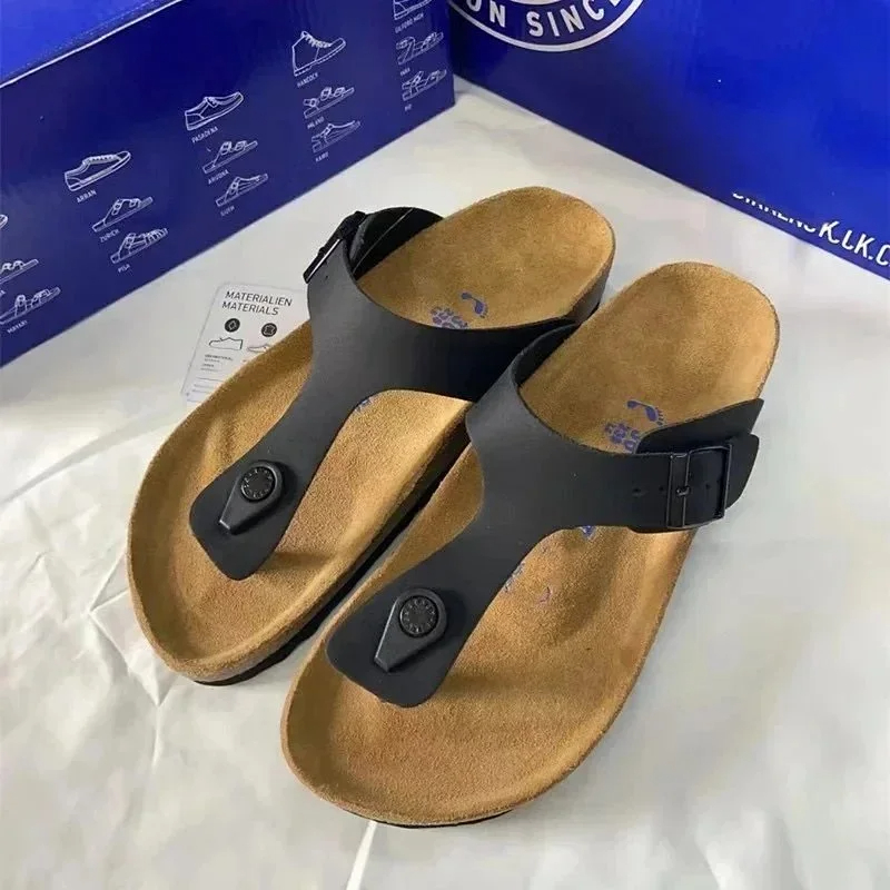 Home > BIRKENSTOCK Lazy men's and women's double buckle flat slippers genuine leather cork footbed comfortable outdoor sandals-2342