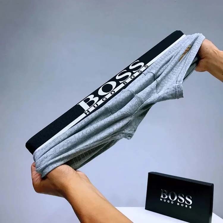 Boss Men's stylish solid color logo embroidered breathable briefs boxer briefs (mens 3pcs)-2392