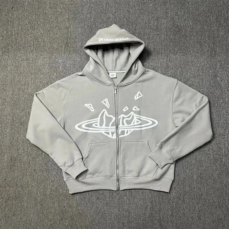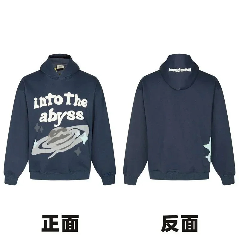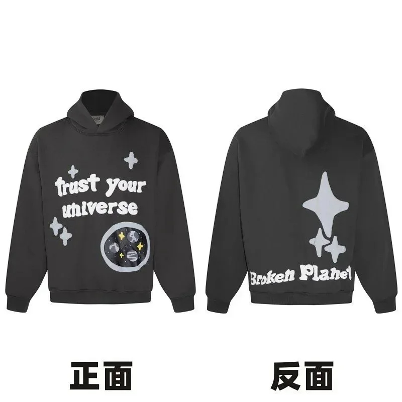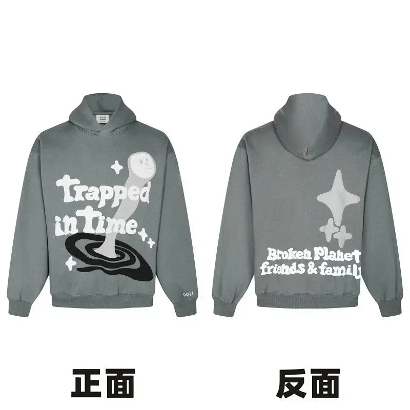 Broken Planet American style retro foam printing hooded sweatshirt-2506