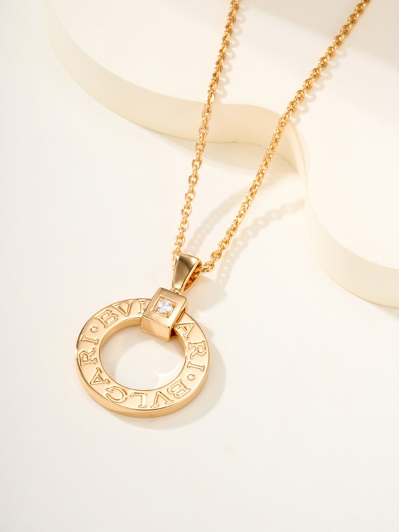 Bulgari logo engraved necklace logo letters on round pendant-3585