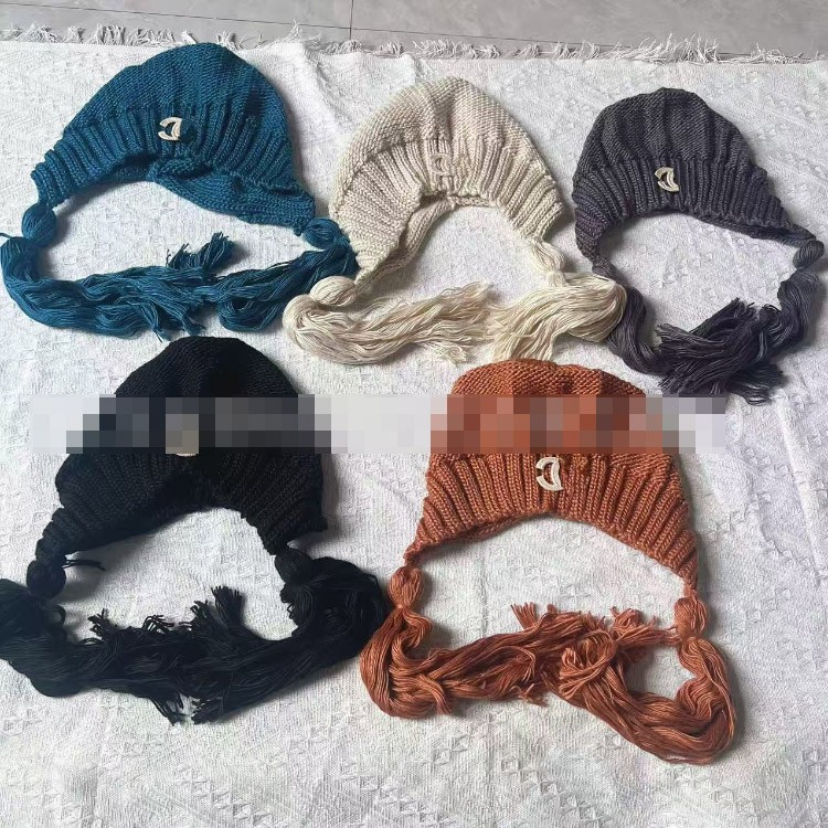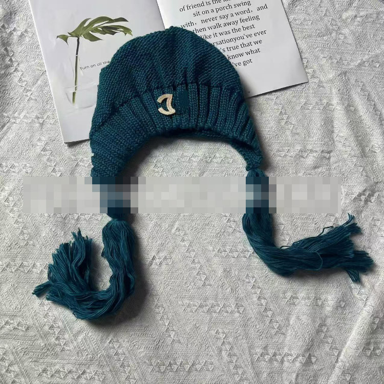 Chanel solid color vintage knitted hat with tassels-5856