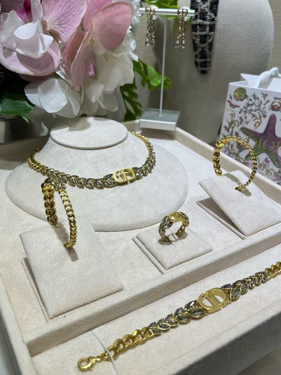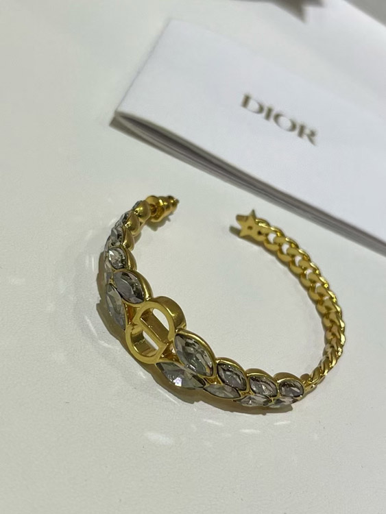 Dior Gold Horse Eye Crystal Wheat Ear Chain Hoop Earrings-3703