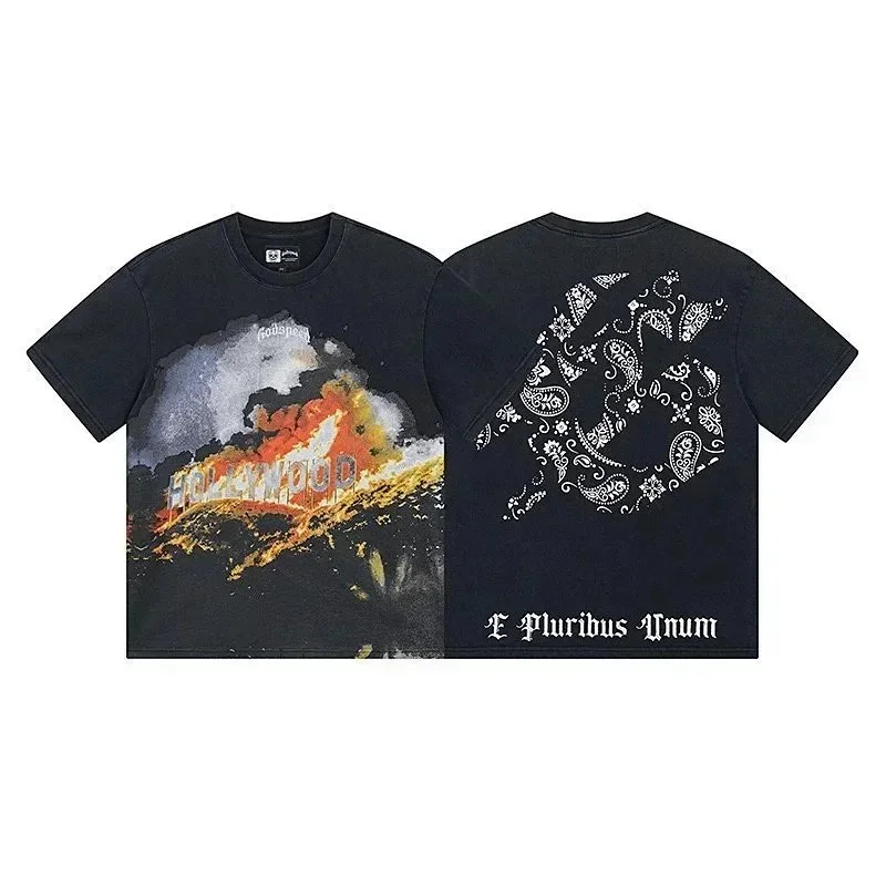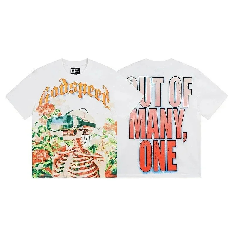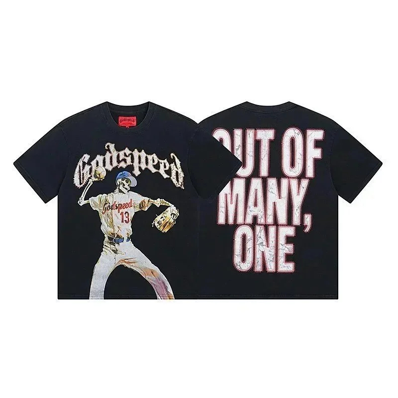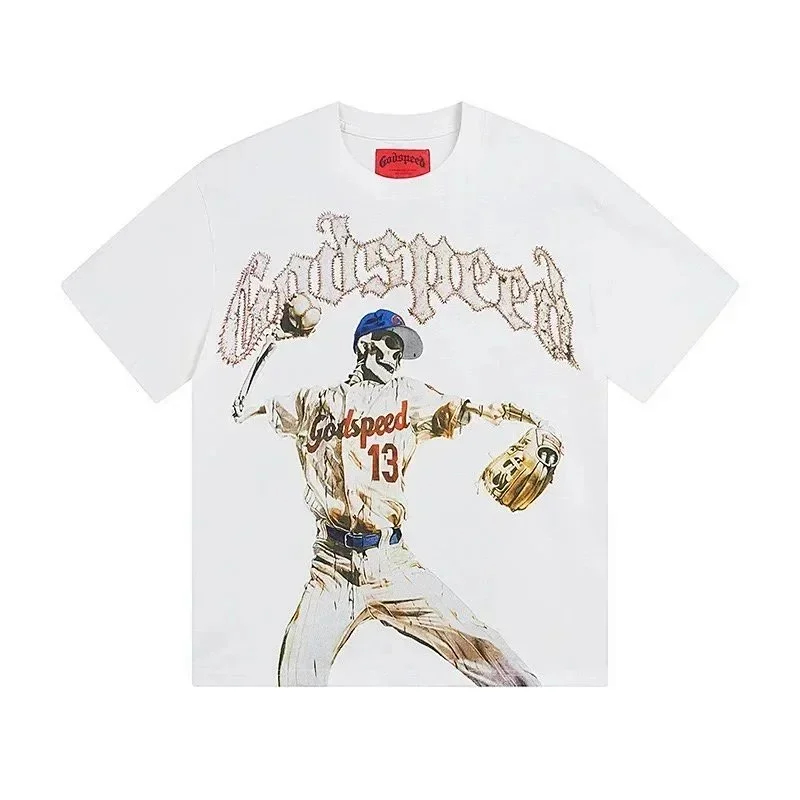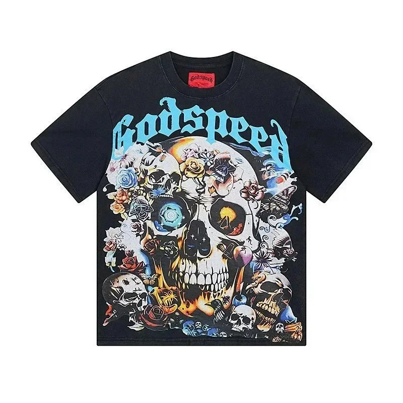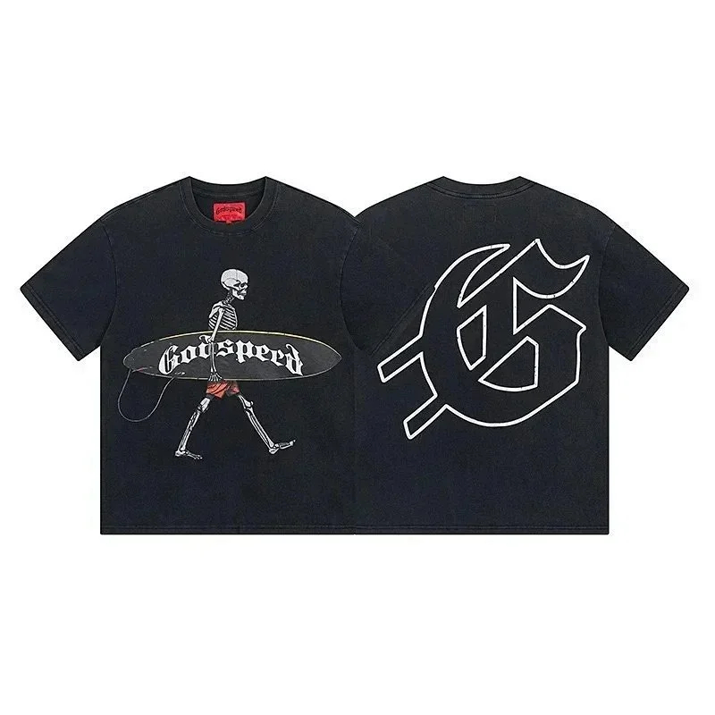 Godspeed letter print loose couple pure cotton round neck short sleeve T-shirt-1979