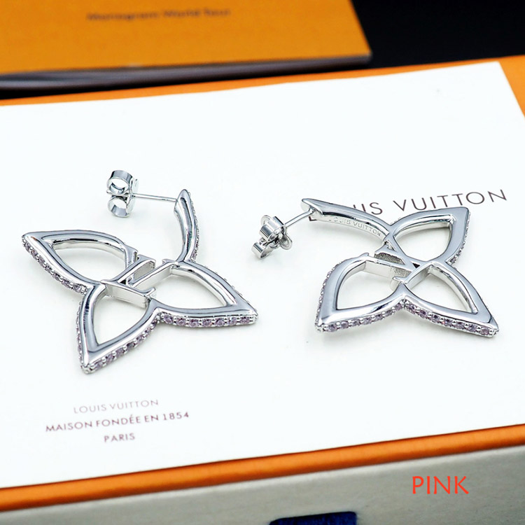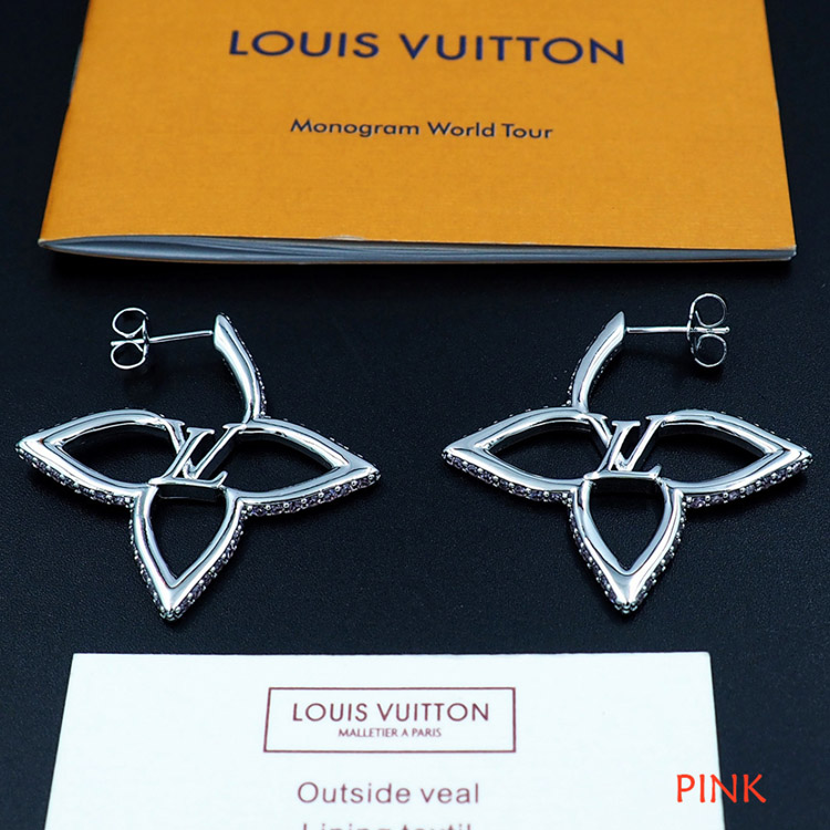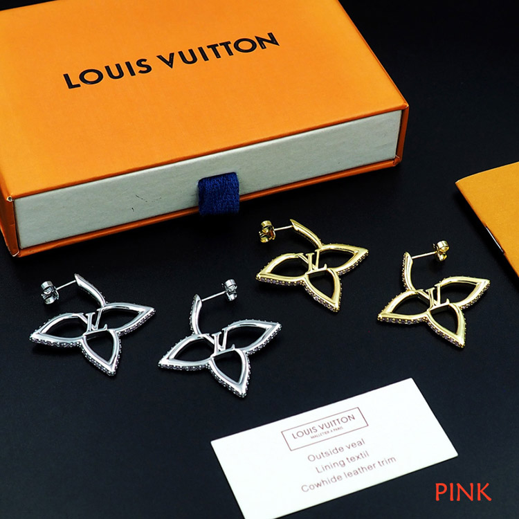 Louis Vuitton LV floral metal hollow outline diamond earrings-4064