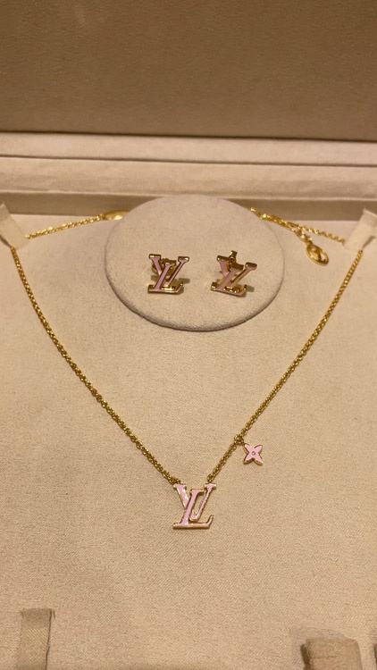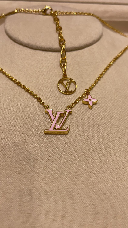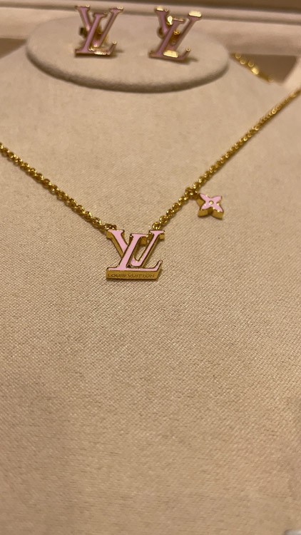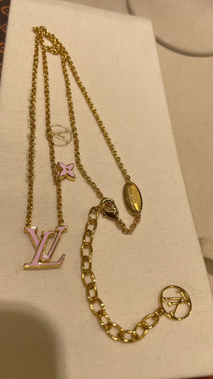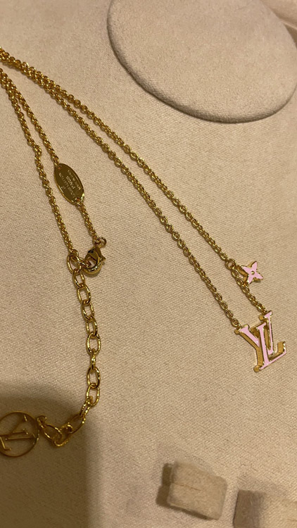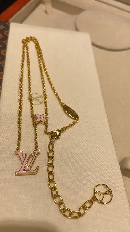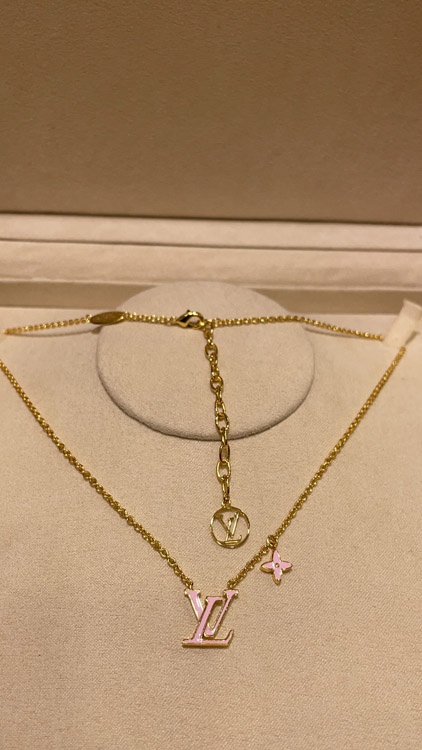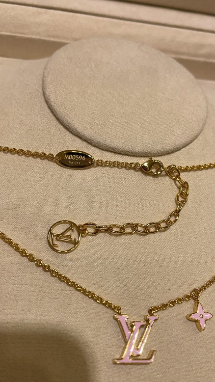Louis Vuitton LV pink enamel letter necklace-3873