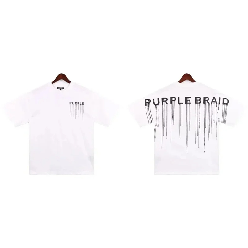 Puerple letter dripping print short-sleeved T-shirt for men and women loose cotton-1801