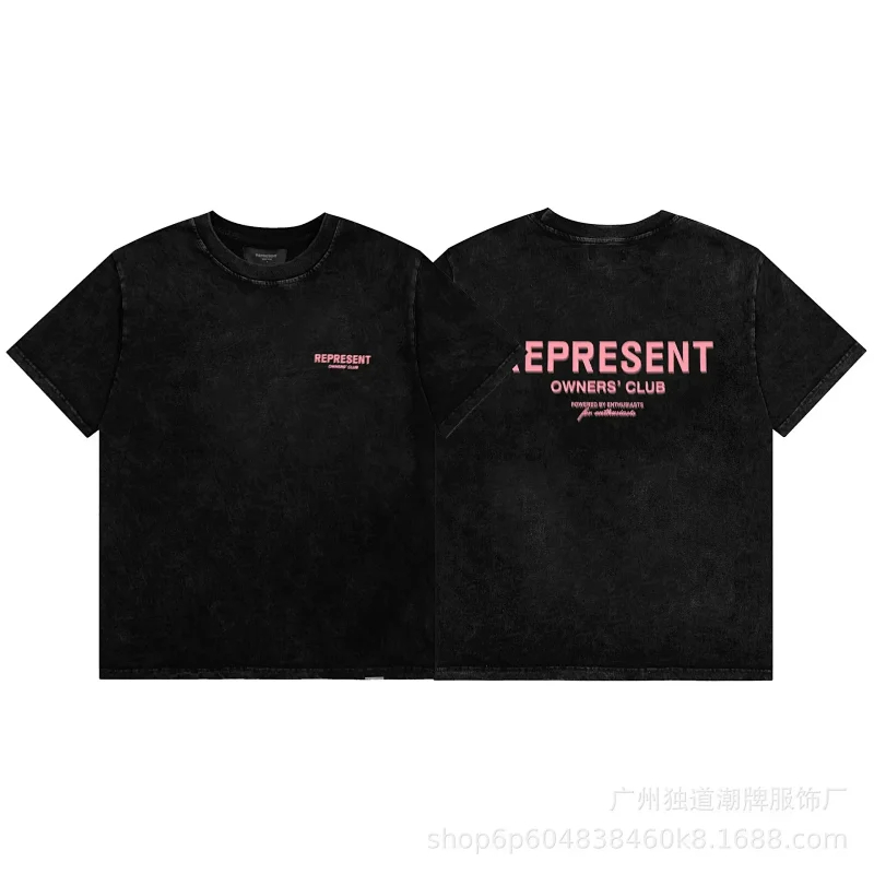 REPRESENT Retro high street small neckline letter print T-shirt-2110