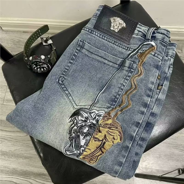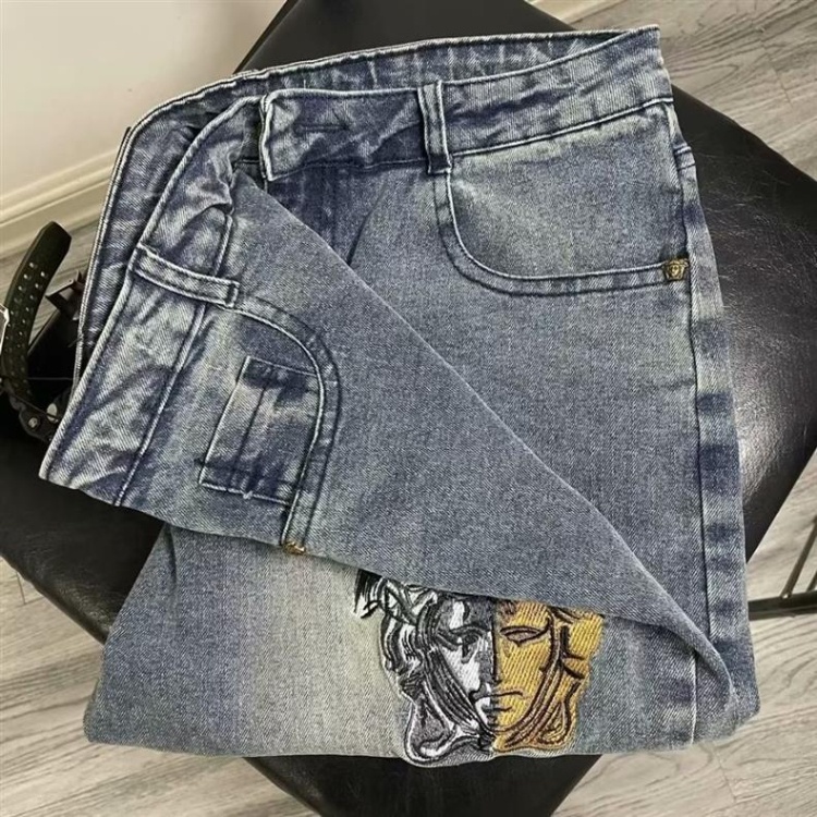 Versace new embroidered casual straight-leg versatile denim trousers-5868
