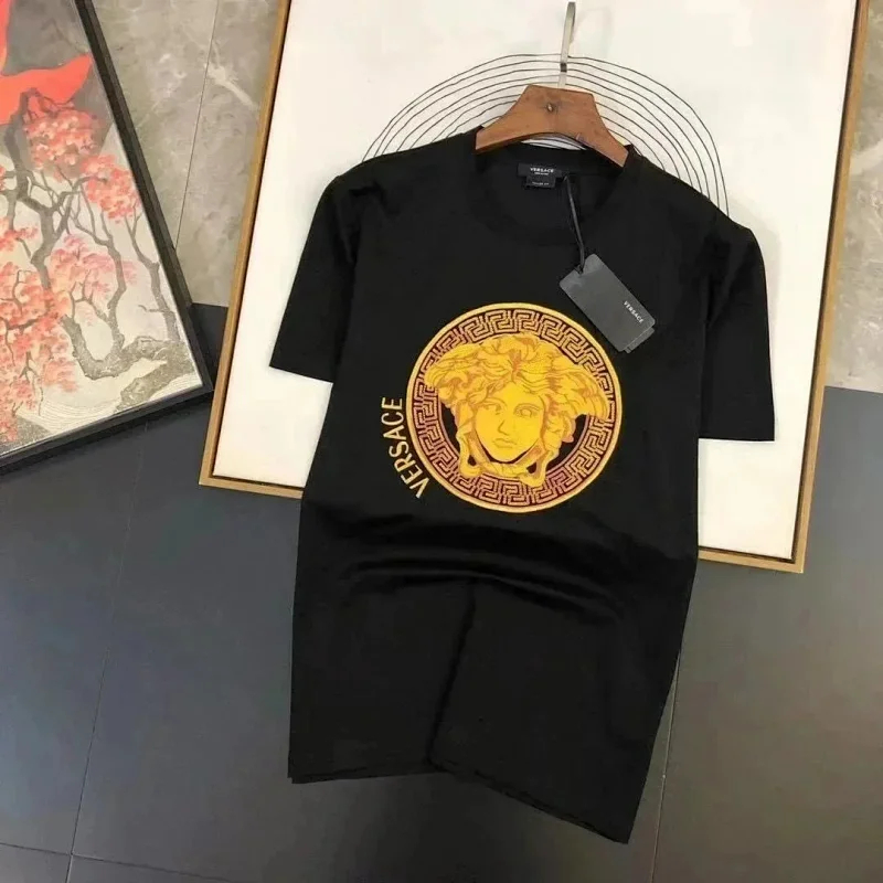 Home > Versace New Embroidered Round Neck Slim Short Sleeve Cotton T-shirt (2 styles)-2840