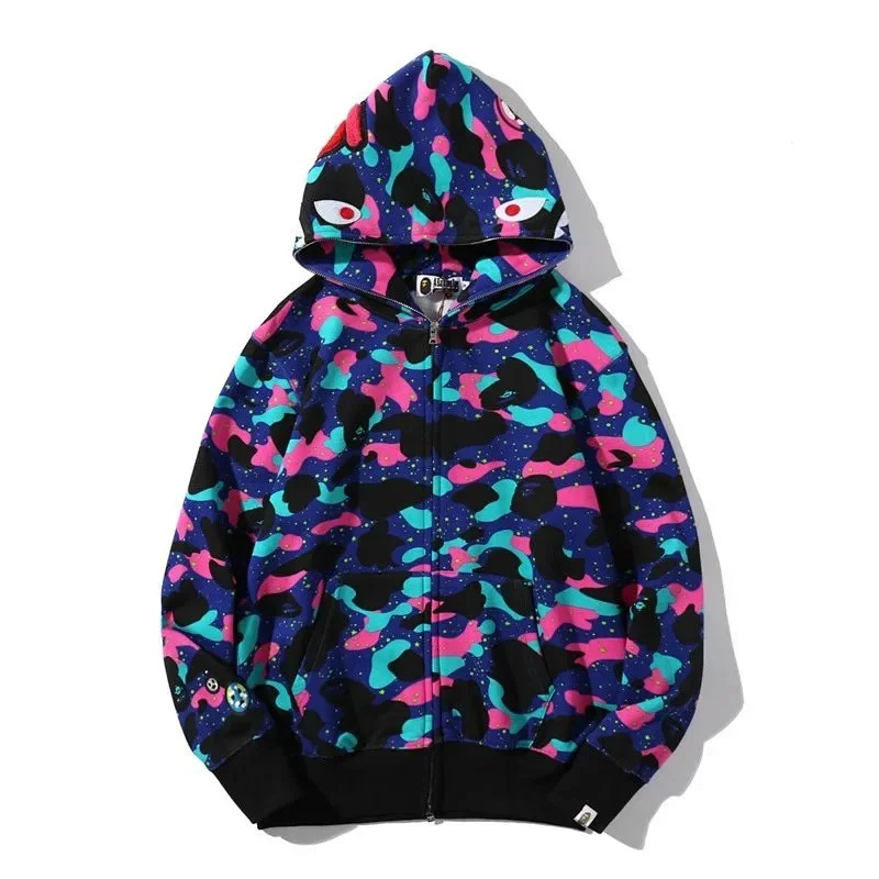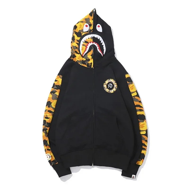 A BATHING APE x KID CUDI collaboration camouflage shark hoodie-5149