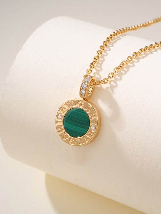 Bulgari double-sided green letter engraving vintage diamond coin necklace-4000