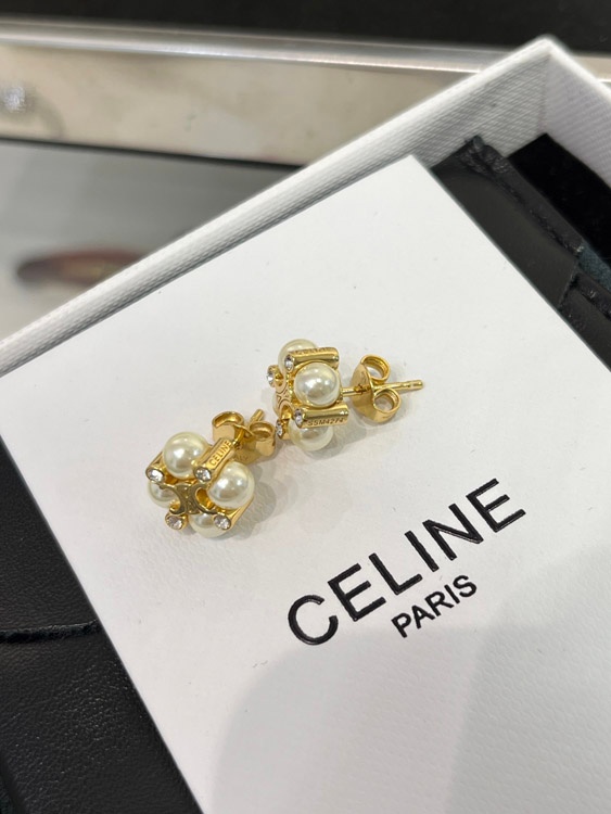 Celine Pearl Gold Arc de Triomphe Earrings-3897