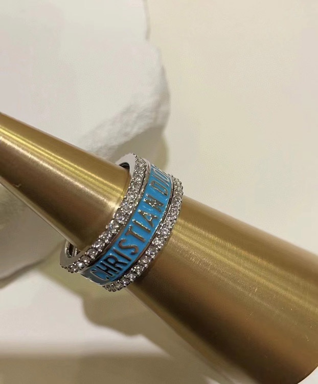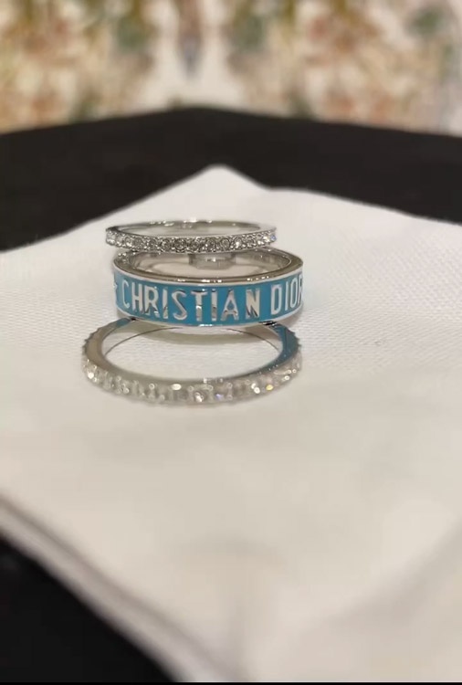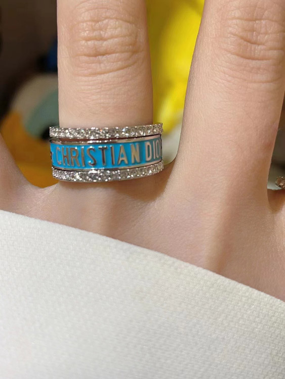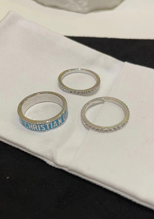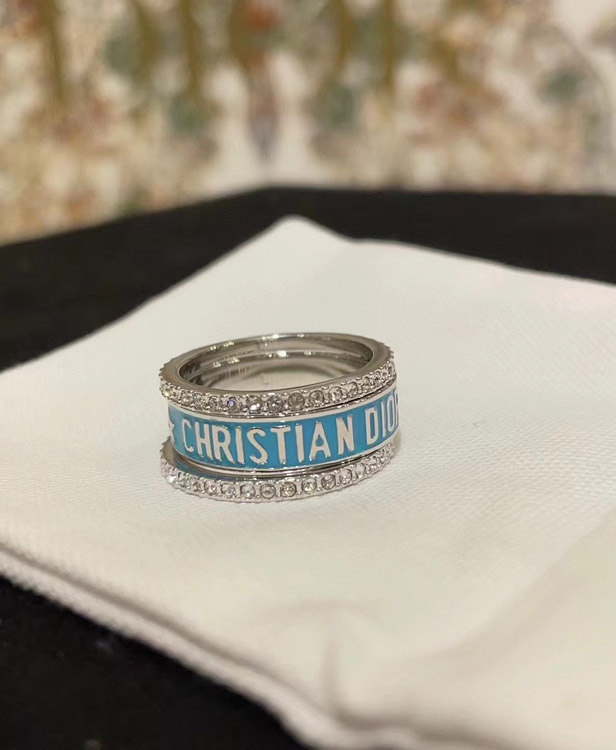 Dior gold letter blue enamel diamond ring set three-piece set-3710