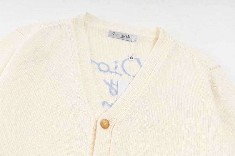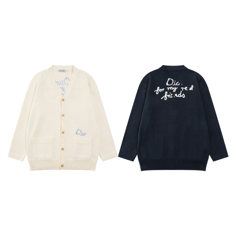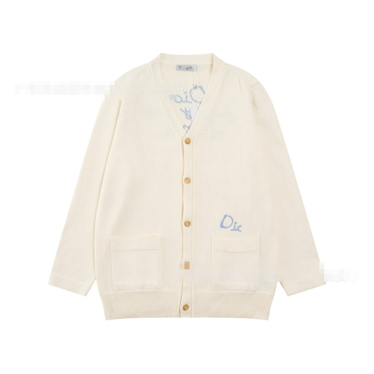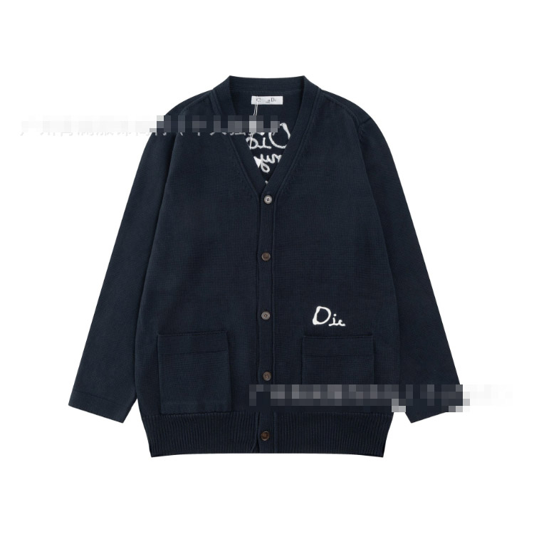 Dior letter logo embroidered casual loose wool knit cardigan sweater-5316